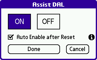 Assist DAL を起動し、[ON]を選択して[Done]で有効になります。