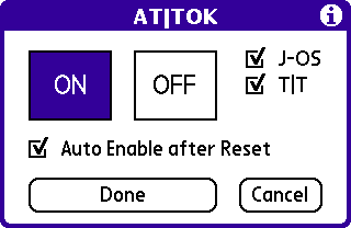 AT|TOK を起動し、[ON]を選択して[Done]で有効になります。