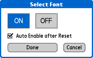 Select Font を起動し、[ON]を選択して[Done]で有効になります。