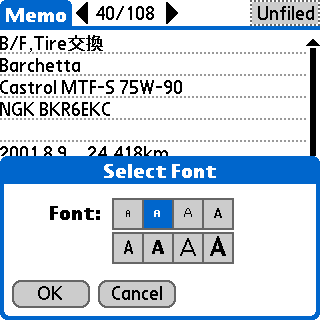 標準の[Select Font]もしくは[フォント選択]で表示フォントの選択を行うアプリケーションで、Tiny/Smallフォントを選べるようにします。