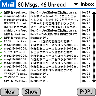 ※m500シリーズまで標準で搭載されていたメールと同等のメールリーダです。TungstenシリーズなどのOS5以降の機種でお使いください。