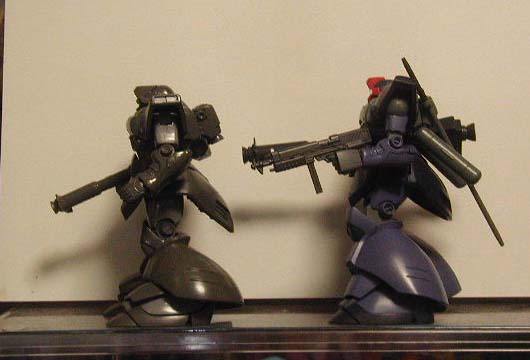 ヒート剣のホルダーやプロペラントタンクが追加されているのと、全高の違いがよく分かるかと。