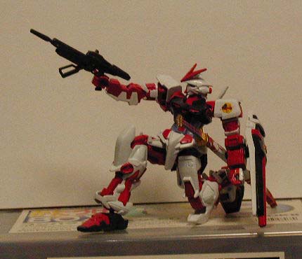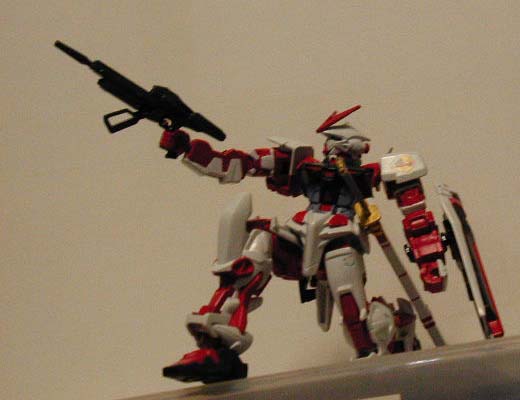 アストレイレッドフレームはよく動きます。無改造でこういう片ひざをついたポーズが取れるくらいよく動きます。